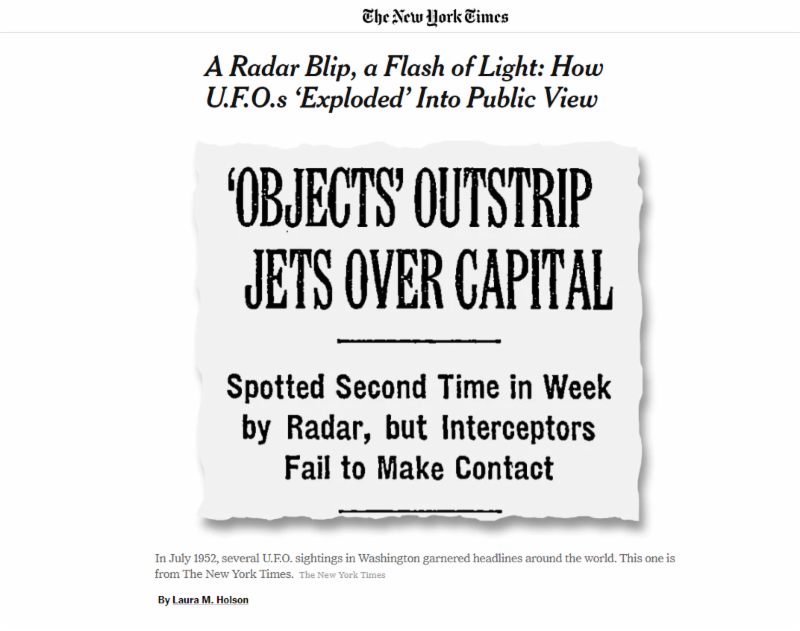The New York Times has followed up its ground breaking December 16, 2017 articles about the Advanced Aerospace Threat Identification Program (AATIP) and the To the Stars Academy of Arts and Science (TTS/AAS) with a new piece about one of the most important sightings in history. PRG sees this as the Times letting us know they are not done with the extraterrestrial issue. Expect more when the political chaos settles down.