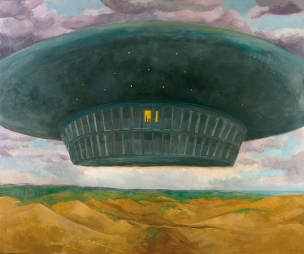 "In 2009, on a trip to Fortaleza, Brazil, I went for a walk looking for inspiration from the landscape. Its mounds of sand dunes rose to the horizon, stood by four trees against a cloudy sky, a spectacular scenery. To my surprise, there was a UFO, half camouflaged by clouds. Here we are, I thought, they exist for real! They are in front of me, I have a notebook and a pencil in my hand, this is my chance, I have a new image!