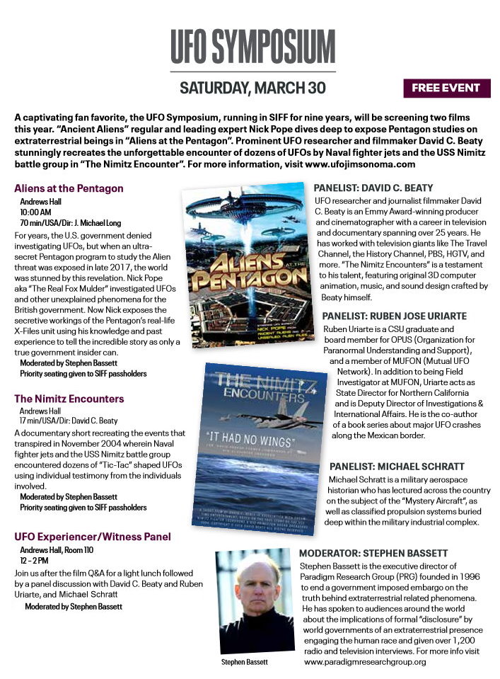 Sonoma Index-TribuneApril 4, 2019 Jim LedwithUfologist For those willing to look with an unbiased mind, the days of tin-foil hat ridicule have ended. In their place are former Pentagon officials, …